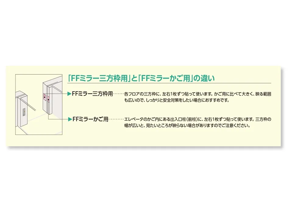 エレベーター内部の出入口柱に付けて外部を確認する鏡