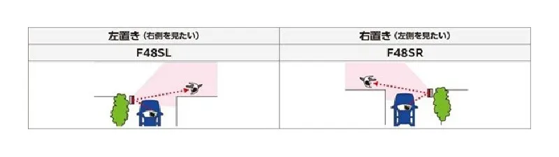 直角設置を前提に調整しているため左置きと右置きで映る範囲が異なります